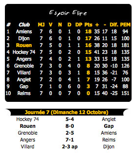 Espoir Elite (7ème journée – Dimanche 12 octobre 2014)