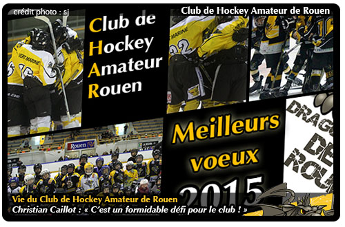 Pour cette année 2015, je tenais à présenter mes meilleurs vœux de réussite et de bonheur à l'ensemble des intervenants du hockey rouennais : parents, joueurs, entraîneurs, bénévoles, dirigeants qui s'investissent au quotidien pour faire du Club de Hockey de Amateur de Rouen l'un des meilleurs clubs formateurs de France.