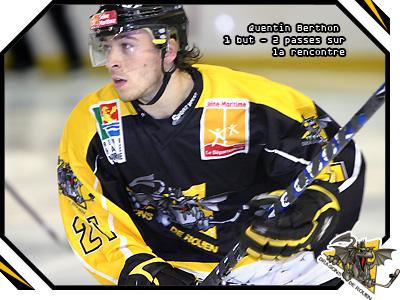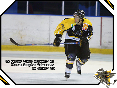 entériner définitivement leur victoire. Pire même pour les locaux, le score prendra une ampleur toute inattendue pour les Dragons qui faisaient grimper fortement leur compteur but. Ainsi, sur une sortie de zone de l'embrasé Clément Hondier, le palet s'en trouvait relayé dans la crosse de Valentin Dumelie. Quelques secondes plus tard et une passe de « Pitou », Quentin Berthon décochait un lancer tonitruant qui prenait en défaut Thomas Picavet (45'30)