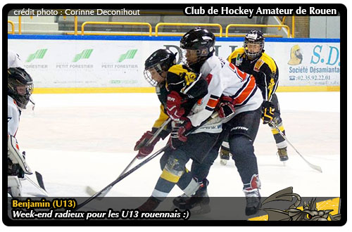 Premiers à ouvrir le bal du week-end, les Dragons U13 de Rouen 2 en déplacement à la patinoire de Caen La Mer pour y affronter son homologue de Caen (2) Face aux Drakkars « développement », les rouennais de Ludovic Duchesne ne mettront que 37 secondes à ouvrir le score. Doublant la mise quelques minutes plus tard, la différence se fera lors du tiers médian avec six buts à la faveur des rouennais. Vainqueurs de Rouen (3) 6 buts à 4 le week-end dernier après avoir subi un revers face à Caen (1) 1-4, les Dragonnets seino-marins rempliront leur mission face à Caen Développement. Menant 8-0 à l'entame de la troisième période, à l'issue de la rencontre, les rouennais rajouteront trois petits buts dans leur besace, bouclant ainsi la rencontre sur le score de 11-0. De quoi lancer en fanfare le week-end U13 des Dragons.