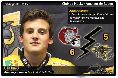 A 3-3 à l'entame de l'ultime manche, les Rouennais, avec un gros début de période, pouvaient espérer s'en sortir. Ainsi, par deux fois, ce diable de Hugo Dumont frappait fort en plaçant deux coups de canon précieux (41'49 & 46'28) alors que seul Rayan Belharfi pour Amiens était en mesure de répondre (44'14) portant ainsi à la marque à 5-4 pour les Dragons à un petit quart d'heure de la sirène finale. « A 5-4 en notre faveur, nous aurions du tenir le score. Même si avec le contenu que l'on a fait sur le match, on ne méritait pas la victoire, l'arbitrage ne nous a pas facilité la tâche » souligne Arthur Nadaux néanmoins heureux de son retour en Picardie « J'ai essayé de ne pas trop chercher le contact adverse avant la match, je n'ai jamais ressenti de mauvaise pression. Ma famille était là pour me soutenir, beaucoup de mes amis aussi, mes coéquipiers ont vraiment été là pour soutenir également, je les en remercie » Alors que les minutes défilaient, Baptiste Bruche profitait d'une séquence en avantage numérique pour ramener le score à 5-5 (50'26) avant que vingt secondes plus tard, Thomas Suire (50'46) s'offre le but vainqueur de la rencontre, un but litigieux qui fera longtemps parlé dans la vestiaire jaune et noir. Quoiqu'il en soit, point de malhonnêteté, il serait trop facile de se cacher derrière un arbitrage parfois aléatoire, cette équipe de Dragon ne méritait pas les trois points de la victoire au regard de son « non-match ».