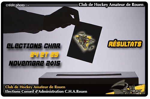 Le mardi 24 et le mercredi 25 novembre 2015 se déroulaient les élections au conseil d'administration du Club de Hockey Amateur de Rouen. 3 candidats etaient en lice pour 6 postes à pourvoir.