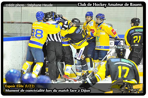 1... C'est le nombre de charge « interne » Perturbés sans doute par la proximité des couleurs des maillots, Bastien Lardière et Benoit Valier pour Dijon se seront offerts une enthousiaste collision au beau milieu de la glace de l'Ile Lacroix. #Proximité #EntreNous