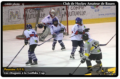 Dernier match et dernier suspense pour cette première journée du tournoi U11 « Gothika Cup » d'Amiens avec une ultime opposition « en nocturne » entre les Français Volants de Paris et les Dragons de Rouen. Si d'ores et déjà, l'ordre des demi-finales était connu avec Amiens face à Bretagne et Courbevoie face à Evry / Viry, les Dragons, eux, de leur coté étaient assurés de disputer les matchs pour la cinquième place face à l'une des équipes de l'autre poule. Soit Reims (3ème) soit Franconville (4ème), toute l'incertitude de cette dernière rencontre face aux Français Volants où les Rouennais pouvaient encore espérer accrocher, donc, la troisième place de leur poule derrière Amiens et Courbevoie .
