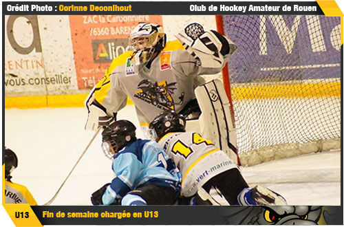 Trois matchs, trois victoires tel sera le bilan des protégés de Christophe Renard à l'issue du week-end à commencer par Rouen (2) qui aura fait une très belle affaire au classement avec sa double confrontation face aux Havrais. Le samedi à « la ville aux mille cheminées », le dimanche à la « ville aux cent clochers » Tout un programme que les U13 (B) avaleront avec entrain. Face au deuxième de la poule A, la marge de manœuvre du leader rouennais était plutôt réduite. Pourtant rapidement, les Dragons prendront l'ascendant lors de la première confrontation. Après avoir ouvert le score, les rouennais mettront à profit la première période pour creuser l'écart à 2-4. Alors que la deuxième période n'offrira qu'un petit but à la faveur de la troupe jaune et noir, c'est dans l'ultime manche que les rouennais creuseront indéniablement l'écart avec un 7-1 les amenant à un large succès 12 buts à 3. Dès le lendemain, sur leur Ile, les rouennais feront en sorte de se faire respecter sur leur glaçon. Proprement avec une symétrie parfaite dans les périodes avec à chaque tiers trois buts marqués, les Dragons enchaîneront un deuxième succès avec un unique bémol le premier but de la rencontre subi après seulement deux minutes de jeu. Quoiqu'il en soit avec un deuxième succès en deux jours face à l'association Le Havre / Cléon, cette fois, 9-1, les rouennais s'envolent au classement de la Poule A avec six points d'avance sur les Havrais et une nouvelle double confrontation à venir à la mi-mars précédée de la réception de Caen (3) et d'un déplacement chez Caen (2) A quatre matchs de la sirène finale de la poule A, plus que jamais les Dragons de Rouen (2) semble en ballotage favorable pour décrocher la timbale de la Poule A.