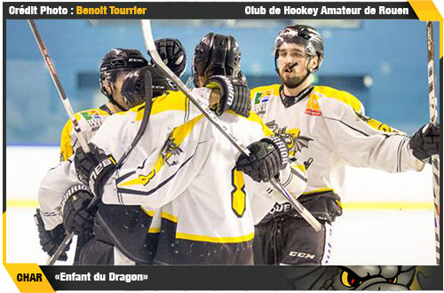 A ce moment là de l'histoire, ni les uns, ni les autres ne mesurent encore l'ampleur que prendra cette aventure jaune et noire. 18 ans plus tard, de l'eau aura coulé sous les ponts de la Seine. Le « gamin » qui donnait ses premiers coups de griffes sur la patinoire de l'Ile Lacroix, a bien grandi, les matchs ont défilé, les titres aussi mais toujours avec une constante le jaune et noir floqué d'un Dragon comme maillot. 130 matchs de Ligue Magnus sous les couleurs du Rouen Hockey Elite 76, 100 matchs tout pile joués en catégorie Espoir, le deuxième plus gros total de l'histoire du club, des centaines de matchs joués dans les différentes catégories du C.H.A.Rouen.. 2 titres de champion de France Espoir Elite, 2 en Cadet Elite, 1 en Minime, 2 Ligue Magnus sans parler de l'Equipe de France et le tout à 22 ans ! N'en jetez plus la Coupe est pleine ! Vous, qui lisez ces lignes, venez de découvrir l'authentique définition d' « Enfant du Dragon » , viscéralement attaché à ses couleurs et respectueux de son club.