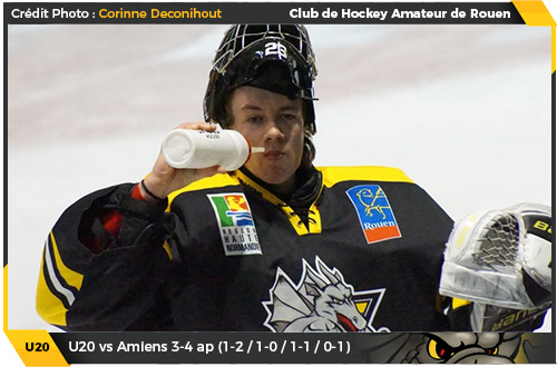 Un Arthur Nadaux toujours aussi précieux et inspiré, un Valentin Duquenne particulièrement décisif, un Jules Lefebvre percutant, une équipe de Rouen fatiguée mais concernée et travailleuse, tous les ingrédients semblaient réunis pour permettre aux Dragons U20 de s'imposer ce mercredi sur leur glaçon jaune et noir face au rival picard. Cependant, c'était sans compter sur la farouche envie des Gothiques d'Amiens de venir décrocher des points sur l'Ile Lacroix dans l'optique d'une lutte à couteaux tirés au classement avec les rouennais.