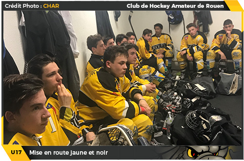 Absent lors de la ½ finale normande en raison des demi-finales U15 disputées à Grenoble par Colmar, l'intenable attaquant, auteur de 70 points (44 buts – 26 passes) en 24 matchs U15, Jérémy Miclo ne tardait pas à se mettre en valeur en mettant le feu d'entrée de jeu pour l'ouverture du score alsacienne (01'07) Se reprenant immédiatement en avantage numérique sur un lancer précieux de Julien Chaumont (03'10), les Dragons lançaient leur partie avec ce retour au score alors que Léo Compignie se présentait cinq minutes plus tard pour doubler la mise pour le camp jaune et noir (08'26) Une heureuse initiative qui permettait aux Dragons de mener au score dans une période où ils manqueront de plomber l'ambiance mulhousienne notamment en avantage numérique à trois reprises (08'26, 09'49 & 16'39) En espérant que les Normands ne payent pas cher leur manque d'opportunisme offensif en avantage numérique durant les deux tiers suivants.