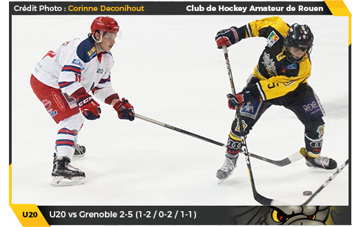 Perdre est une chose, perdre avec le sentiment d'injustice tenaillé au cœur en est une autre. A l'issue de la demi-finale U20 entre Hockey 74 et les Dragons de Rouen, l'amertume sera bien longue à dissiper dans le camp jaune et noir. Non pas que Hockey 74 ne mérite pas sa place en finale loin de là, la marge entre les deux formations étant infime et il était écrit que le vainqueur de cette série serait déterminé sur un détail, et du coté de la Normandie, on aurait espéré que la décision soit uniquement sportive et non le fruit d'un concours d'inconsistances, d'incohérences, d'absurdités arbitrales. Lancés à cœur perdu dans cette demi-finale, les deux formations s'échangeront coup pour coup dans le bon sens du terme tout au long du week-end. A l'ouverture du score de Hugo Dumont, Jeffrey Sidoit répondait sur le premier match alors que le troisième tiers permettait aux uns et aux autres de s'illustrer face aux filets : Nicolas Plaquevent et Lévy Raux chez les Dragons, Kévin Tassery et Bastien Zago chez Hockey 74.