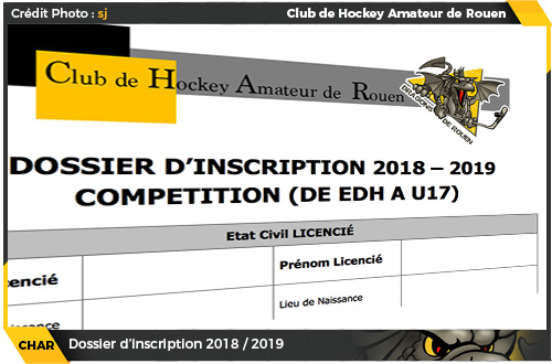 Les dossiers COMPLETS sont à remettre au secrétariat du CHAR (patinoire Ile Lacroix, 1ère Etage, bureau 111) au moins une semaine avant la date du premier entraînement de la catégorie concernée.