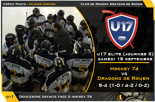 Si à Rouen, la victoire est érigée au rang de culte irrépressible, il arrive parfois que l'insuccès satisfasse même les plus exigeants. En se privant de six joueurs volontairement suite au naufrage du week-end dernier face aux Brûleurs de Loups, les U17 rouennais ne s'étaient pas mis dans les meilleures dispositions possibles au moment de rendre visite à Hockey 74 pour le compte de leur troisième rencontre du championnat. Mais plus que les résultats et les victoires, l'état d'esprit, l'attitude restent des valeurs auxquelles le Club de Rouen ne souhaite pas, ne souhaite plus déroger.