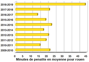 En effet, à la décharge du corps arbitral, il semblerait que statistiquement les Dragons soient plus exposés cette saison que l'ensemble des autres équipes. Alors que depuis le début de la saison, les trois équipes de la Poule A (Gap, Grenoble, Hockey 74) restent dans les normes habituelles avec 17 mn de moyenne par match, dès que l'on y ajoute Rouen, la moyenne s'envole à 23,8 mn alors que traditionnellement depuis 5 saisons, les rouennais se situaient dans les moyennes nationales.