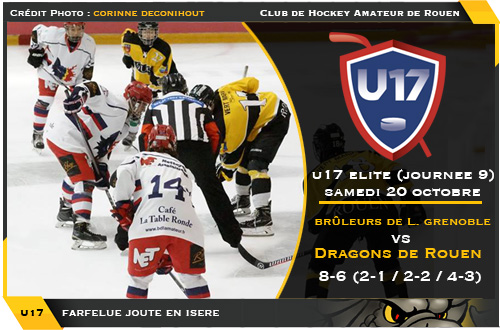 7 matchs – 7 victoires, meilleure attaque, meilleure défense de la poule A. Un bilan parfait pour les Brûleurs de Loups de Grenoble qui accueillaient à l'occasion de la 9ème journée, des Dragons de Rouen toujours sur courant alternatif mais prompt à saisir la moindre opportunité surtout face à Grenoble. Dans ce énième épisode du duel récurrent du hockey mineur hexagonal, la part belle sera offerte aux chasseurs de but de deux équipes laissant les gardiens dans la difficulté tout au long de la partie.