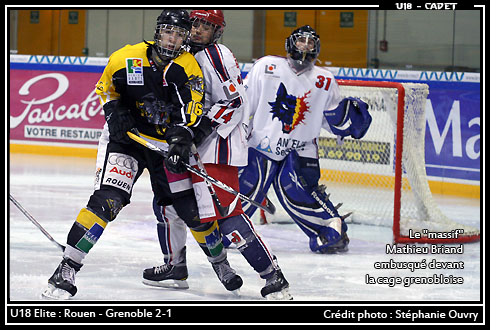 Tel ne sera pas le cas à l'issue de la troisième période. Toujours soutenus dans les tribunes par « notre artiste du nouveau» Ronan Guegot, les Dragons finissaient par trouver l'ouverture dans la solide défense présentée par Antoine Bonvalot. Les patins parfaitement lacés, Mathieu Briand, la canne à pêche fièrement sortie, pouvait à loisir patiner dans la défense montagnarde avant de lancer en direction de la cage. Certes, la tentative n'était pas couronnée de succès mais le rebond l'était sous l'égide de l'attaquant à la feuille d'érable, Maxime Griet (41'26) Contrôlant désormais la rondelle avec avidité, les joueurs de Rouen sollicitaient un peu plus le gardien isérois à l'image de Florian Duval sans réussite (43'41) ou avec plus d'opportunisme pour Maxime Griet, tout en puissance, en deux fois, au rebond sur un bon jeu en power-play orienté par Mathieu Briand (2-0 à 48'12) En fin de match, les Brûleurs de Loups seront récompensés de leurs efforts sur une percée aux oreilles d'Arnaud Faure pour un lancer qui réduisait le score à 2-1 (57'45) Réduction du score inutile pour les Isérois, la sortie du portier grenoblois (59'30) ne suffira pas à les aider à égaliser. Les jeunes Dragons finissaient par s'imposer 2 buts à 1, chevauchant du coup au classement leur adversaire de la soirée avant de rejoindre la Champagne et Reims samedi prochain.