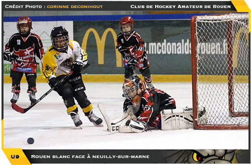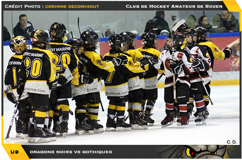 Vainqueur de leur poule respective, il était logique de retrouver le trio Dammarie-les-Lys, Caen, Rouen Noir à l'avant poste pour décrocher l'une des deux places en finale du tournoi. S'il ne fallait pas négliger la présence des Gothiques toujours prompts à jouer les bons coups, la première rencontre de la poule laissait la part belle aux Dragons vainqueurs d'Amiens 5 buts à 1. Tandis que Caen et Dammarie-les-Lys répliquaient de bien belle façon respectivement face à Angers (5-2) et Wasquehal (7-3), la première confrontation directe entre le trio pointait le bout de sa crosse avec une opposition pour la suprématie normande entre Caen et Rouen Noir. Si la confrontation tournera à l'avantage des Dragons (3-2), c'est en fait les Caribous de Dammarie-les-Lys qui souffleront le chaud et le froid dans cette poule. En effet, alors que la soirée de samedi avait plutôt été propice à la Normandie, le dimanche le sera nettement moins. Balayés 3-0 par Amiens, les Drakkars connaissaient un réveil difficile d'autant plus que dans la foulée, c'est face à Dammarie qu'ils s'inclineront 2-1, même combat chez les Dragons qui se feront chahuter par des Caribous déchainés et surtout vainqueurs 3 buts à 1. Amiens replacé en embuscade, Caen en grande difficulté, Rouen Noir en ballotage semi-favorable, à cinq matchs de la fin de la poule, seul Dammarie-les-Lys semblait confortablement installé dans le train pour la finale. Repartis d'un bon de patins face à Wasquehal (5-3), c'est face aux Ducs d'Angers que les Dragons de Rouen iront chercher leur place en finale en s'imposant 3-2. Une heureuse victoire qui offrait une finale aux rouennais face au vainqueur du dernier match de la poule entre Dammarie-les-Lys et Amiens. De suspense, il y aura mais il sera court tant les Caribous feront en sorte de se faciliter la vie avec un large succès 4-0 leur ouvrant grande les portes de la finale contre les Dragons de Rouen Noir.
