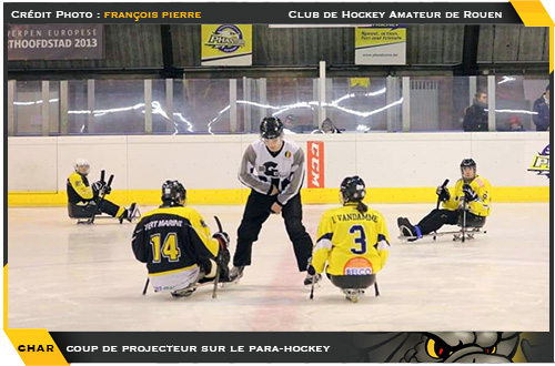 Créée désormais il a plusieurs saisons, la section para-hockey (anciennement hockey luge) du Club de Hockey Amateur de Rouen se déplaçait le week-end dernier en Belgique à Anvers pour un match amical face aux Phantoms d'Anvers. L'occasion d'allumer un projecteur sur cette catégorie jaune et noir qui continue peu à peu son développement.