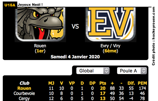 Avant de profiter de quelques jours de répit pour la trêve de Noël, l'équipe U15 jaune et noir avait à cœur de boucler l'année 2019 sur un succès face aux Jokers de Cergy.