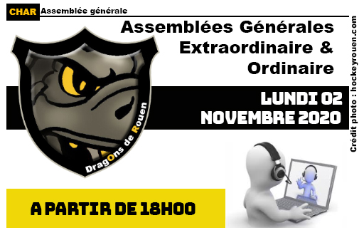 Les différents rapports et propositions qui seront présentés seront soumis à adoption lors de des assemblées par voie électronique. Seules les personnes licenciées et à jour de la cotisation au sein du CHAR peuvent participer à ces assemblées Générales. J'attire votre attention sur l'importance de votre présence en visio conférence à ces Assemblées du C.H.A. Rouen.