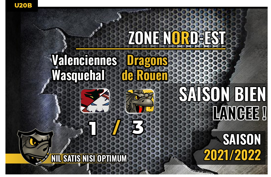Alors qu'officiellement la première journée n'est programmée que le dimanche 10 octobre avec pour les Dragons la réception de l'entente Colombes / Courbevoie, l'équipe U20 Excellence avait l'occasion de se lancer dans son championnat ce dimanche à Valenciennes face à l'association Valenciennes / Wasquehal en match avancé de la cinquième journée. Avec à la clef un succès étriqué, mais précieux, 3 buts à 1, les Normands se positionnent au cœur de l'action en prenant les trois points de la victoire.