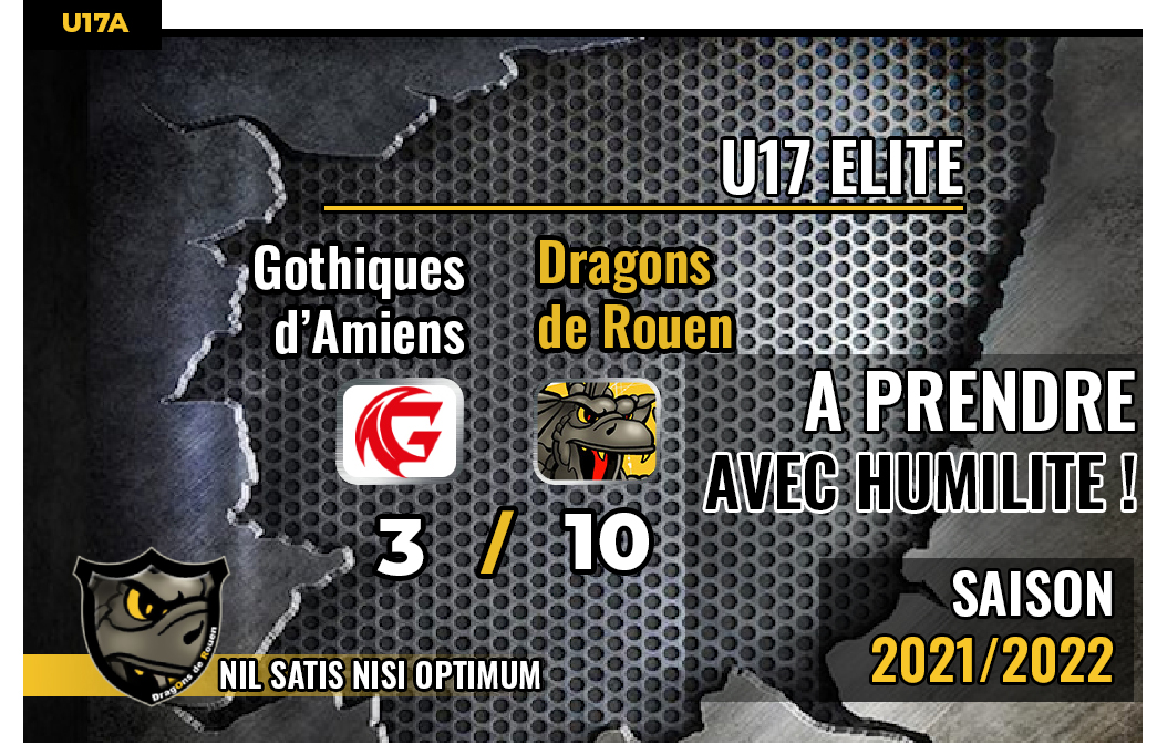 En l'espace de deux rencontres face à l'éternel rival amiénois, les U17 rouennais auront frappé les esprits avec des victoires amples. Déjà vainqueurs 8-0 sur l'Ile Lacroix, en déplacement au Coliséum rouge et noir, les Dragons auront fait encore mieux en signant une historique victoire 10-3 sur son adversaire préféré.