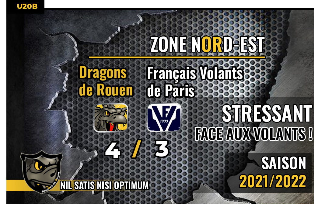 En ouvrant le score face aux Français Volants après seulement neuf secondes jouées, l'équipe U20 excellence jaune et noir pouvait imaginer passer un dimanche pacifique sur son Ile. Et pourtant au terme d'un troisième tiers particulièrement haut en couleurs, c'est sur le fil, dans les deux dernières minutes du match, que les Dragons finiront par s'imposer 4 buts à 3.