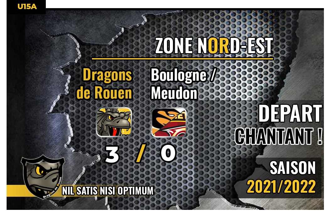 Avec quatre victoires pour quatre défaites en première phase et une troisième place derrière Amiens et Caen, avant d'aborder son déplacement sur l'Ile Lacroix, les franciliens présentaient un bilan équilibré. Alors que le meilleur résultat de l'entente francilienne face à Rouen aura été un match nul 1-1 sur les bords de Seine jaune et noir en janvier 2019, Boulogne / Meudon posera moult problèmes aux Dragons notamment au cours d'une première période où les deux gardiens respectifs, Gabriel Cuesta pour les parisiens, Maxim Lavoie pour les normands, rivaliseront d'adresse pour conserver leur cage inviolée. Dans ce duel de portier, le rouennais aura le dernier mot. En effet, si Maxim Lavoie parviendra à cocher un troisième blanchissage dans la saison pour l'équipe U15 rouennais, son homologue parisien finira par céder douze secondes après la mi-match alors que l'attaquant seino-marin Paul Lubin trouvait enfin la faille dans la muraille parisienne (30'12)