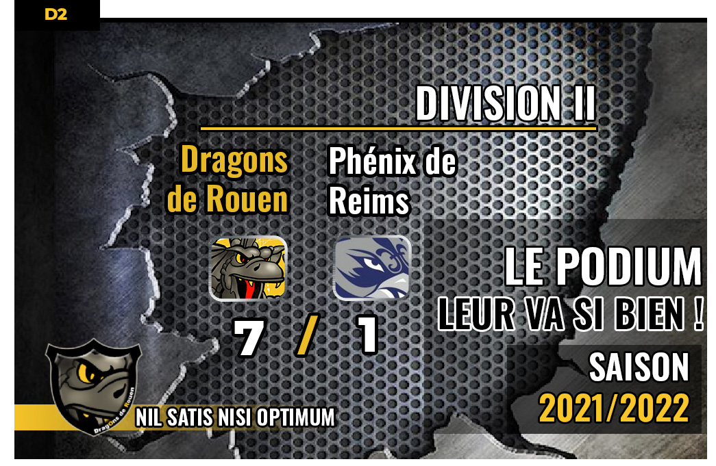 Qui aurait pu prédire qu'après quarante minutes de jeu dans cette rencontre de la 13ème journée, les Dragons seraient devant au tableau d'affichage avec une substantielle marge de cinq buts d'avance. Difficile à envisager et pourtant c'est bien dans cette situation que les rouennais se trouvaient au moment d'aborder l'ultime manche. Nécessairement vexés d'être ainsi rudoyés, leur gardien changé, Tom Charton cédant sa place à Romain Watelet, les visiteurs rémois mettront un point d'honneur à mettre la pression d'entrée de jeu du troisième tiers sur un heureux travail de leur recrue de décembre le suédois Carl Mansson, derrière la cage jaune et noir, auteur d'une astucieuse passe à destination de Brendan Martial, seul, oublié, face à Mathis Thirion pour la réduction du score à bout portant (41'11) A 5 contre 3 dans la foulée (45'01), les Dragons n'auront guère le temps de frémir d'effroi, Konstantin Kebets au rebond sur un lancer de Kaylian Leborgne remettaient les rouennais sur le bon chemin en portant la marque à 6-1. Pourtant soutenus par leur courageux supporters qui auront donné de la voix toute au long du match, les Phénix ne parviendront pas à renaitre de leurs cendres d'ici à la fin de la rencontre. Pire, les Dragons continueront de souffler sur les braises à l'image de Hugo Raveaud, dans les dix dernières du match, pour le septième but jaune et noir (53'48) Des dernières minutes de la rencontre, il ne sera question que d'attendre la sirène finale, Rouen satisfait, Reims blasé, la fin de partie restait sobre et le score inchangé, les Rouennais pouvaient célébrer cette probante victoire face à l'un des ténors de la poule. Bel ouvrage.