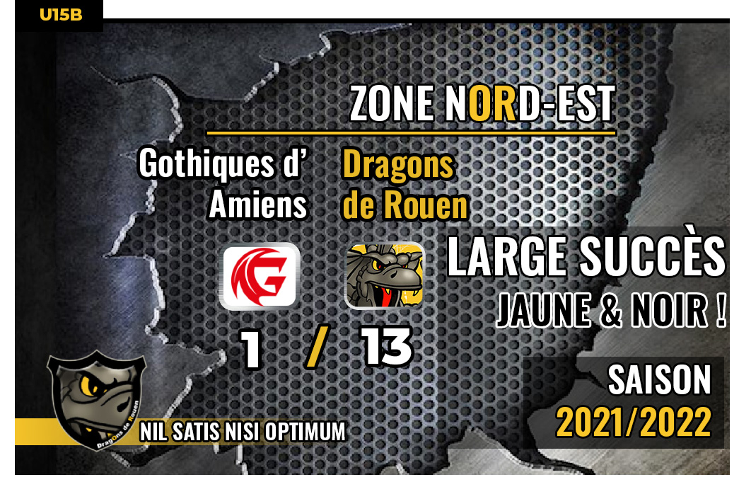 En déplacement chez leurs voisins d'Amiens, les U15B rouennais auront fait mieux que rivaliser avec leurs adversaires gothiques avec à la clef un large succès 13 buts à 1 sur la glace du Coliséum.
