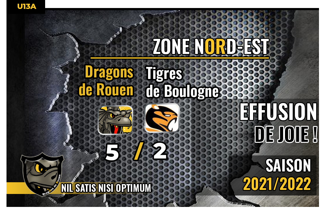 En tête du classement avec huit victoires en autant de rencontres, les Tigres de Boulogne U13 jusqu'alors invaincus, seront tombés sur un os ce dimanche sur l'Ile Lacroix, des Dragons affamés qui raflent la mise 5 buts à 3 grâce notamment à un premier tiers de haute volée.