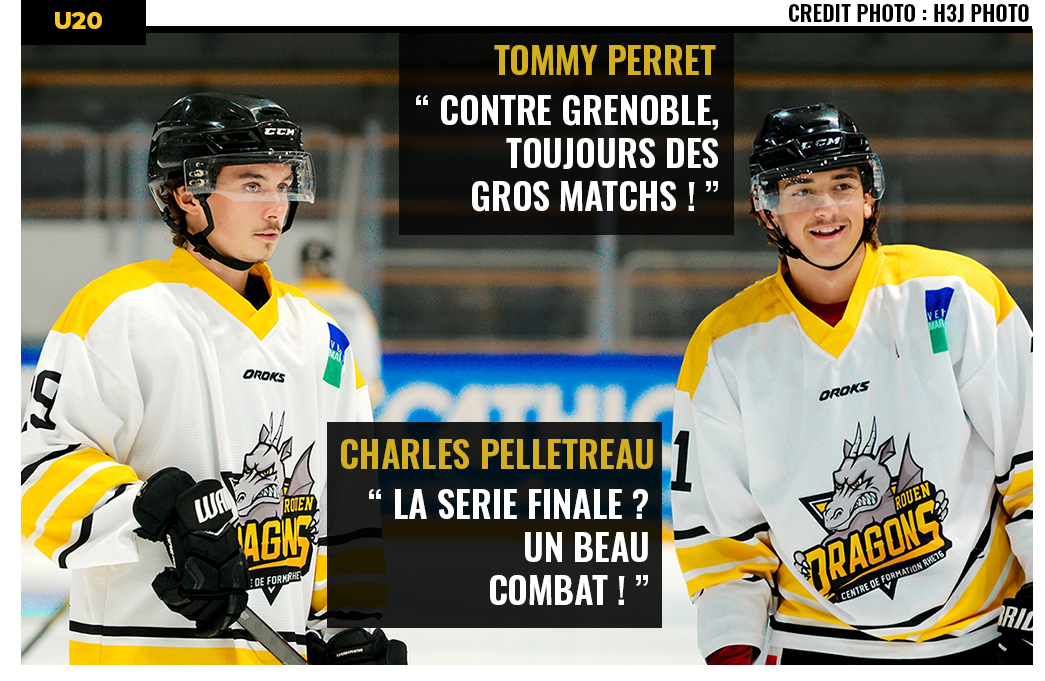 Finale rêvée face à Grenoble en U20 comme le souligne Tommy « nous sommes les deux clubs favoris pour le titre, se retrouver ici à en finale contre Grenoble, cela rajoute encore plus d'envie de gagner, ce sont toujours des gros matchs, deux beaux matchs, ça joue vite, alors avec un titre à la clef c'est encore meilleur » Week-end rêvé pour les Dragons avec une deuxième finale à vivre en parallèle avec les U17 « la finale pour les U17 va être compliquée aussi, on sait que Grenoble est resté invaincu presque toute la saison régulière avec une seule défaite et justement ce sont les U17 rouennais qui les ont battu, je suis persuadé qu'ils peuvent créer la surprise » de préciser Charles Pelletreau, une petite pensée pour les plus jeunes qui vivront également leur apothéose de la saison.