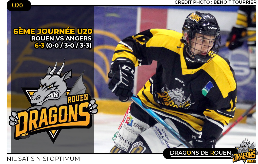 Dans son duel à distance avec les Brûleurs de Loups de Grenoble qu'ils auront battu chez eux à la mi-septembre, les Dragons de Rouen se devaient de répondre à la victoire isérois en terre picarde 10-4. Chose faite sur les bords de Seine en s'imposant 6 buts à 3 face aux Ducs d'Angers à l'occasion de la 6ème journée du championnat U20 Elite.