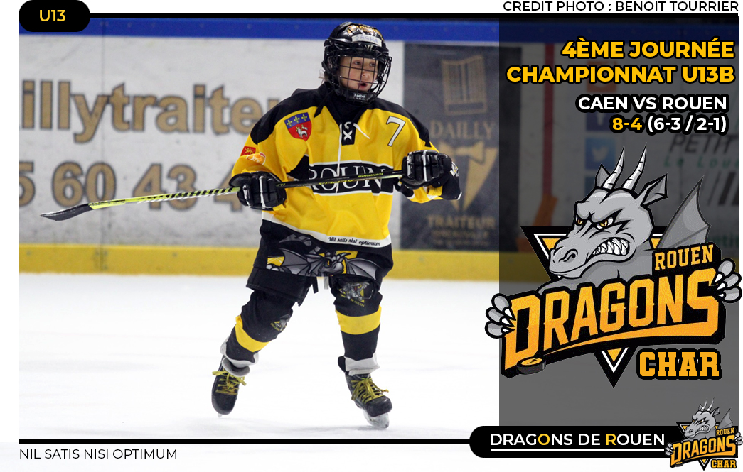 Même si à l'issue de la rencontre, les Dragons U13B étaient contraints de s'incliner 8 buts à 4 face à leurs homologues de Caen, notamment en début de partie, les rouennais auront livré une très belle bataille menant même au score avant de connaître un décisif trou d'air au quart d'heure de jeu.