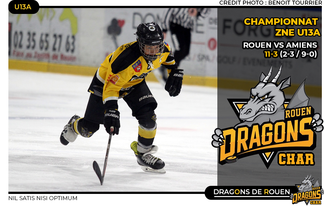 Restés sur un improbable score de parité 7-7 chez les Lions de Wasquehal le week-end dernier, les Dragons U13A auront profité de la venue de leurs copains d'Amiens pour retrouver le sourire de la victoire avec un large succès 11 buts à 3.