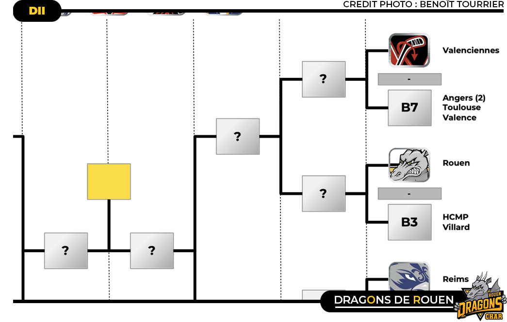 Alors que pour leur dernier match de saison régulière, la D2 jaune & noir répondra à l'invitation des Comètes de Meudon-la-Forêt la semaine prochaine, ce samedi était l'occasion pour les deux poules de rattraper les matchs en retard. Cette fois, toutes les équipes appartiennent au clan des « 17 matchs joués » et le tableau des play-offs continue de se construire. Pour les Dragons, toujours pas de certitudes mais les Ours de Villard-de-Lans tiennent la corde.