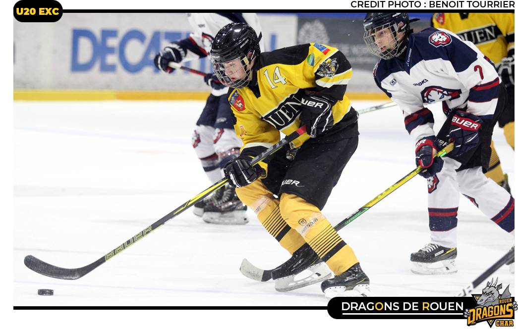 Truculente, trépidante, cette fin de saison régulière en U20 Excellence avec cette lutte à couteaux tirés entre les Dragons et les deux équipes de Flandres. Une semaine après avoir coché une belle case en s'imposant face à son plus sérieux rival Flandres (2) 5-4, face à l'autre équipe du Nord, le premier tiers résonnait de trois coups de semonce rouennais avec un score de 3-0 à la fin du premier vingt minutes. En effet, bien lancés par l'ouverture du score de Thomas Maillard (03'48), le clou était sèchement enfoncés par les rouennais sous l'impulsion de Denis Filatov (10'54) et Elliot Maes (18'35). Les deux défenseurs, en verve offensivement, venaient de creuser un écart irrémédiable que Raphaël Opoma Ngombo prenait malin plaisir à alourdir un peu plus à l'entame du deuxième tiers (26'22)