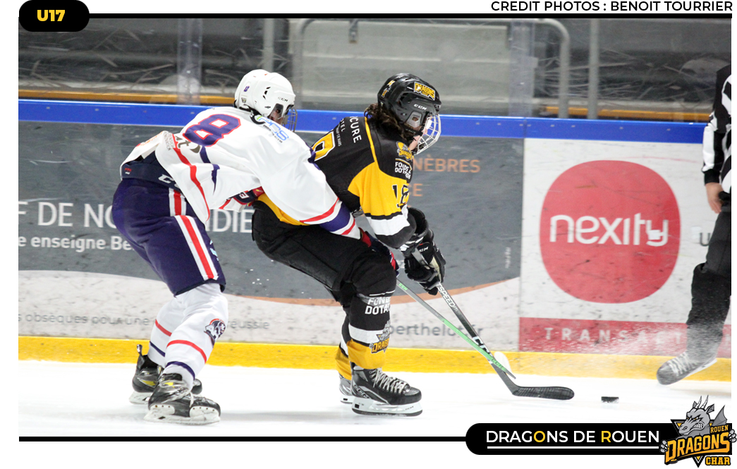 Cette fois pas de « eyes of the tiger » pour achever la pause mais un plus sombre « highway to hell » qui espérons le n'était pas un message subliminal envoyé aux Dragons. S'il était préférable pour les rouennais d'éviter l'autorotoue pour l'enfer, avec impatience, on attendait que les rouennais s'affranchissent des « panneaux stop » et des « limitations de vitesse » pour prendre « la route pour la terre promise » En attendant de toucher le grâal, les rouennais se mettaient en danger en concédant quelques pernicieuses pénalités (22'25, 26'56 & 31'21) occasionnant quelques tentatives ligériennes qui permettaient au cerbère rouennais, Maxim Lavoie de s'illustrer par des interventions rassurantes. Finalement, c'est franchie la barrière des trente minutes de match qu'enfin le score évoluait. En avantage numérique, à la réception d'une passe de Paul Le Lem, Noa Besson se montrait espiègle en feintant la passe avant de prendre un lancer parfait pour l'ouverture du score jaune & noir (30'58) Soulagement dans le camp jaune & noir, joie pour le buteur qui pouvait faire tournoyer son poignet avec entrain pour célébrer le premier but de cette demi-finale. Litigieuse sera l'égalisation ligérienne cinq minutes plus tard alors que de la ligne bleue, Basile Tretout décochait un puissant missile que Maxim Lavoie semblait pourtant avoir contrôlé. Quoiqu'il en soit, à l'affut Alexis Lossev trouvait le moyen de chaparder le palet pour le glisser au fond des filets rouennais (35'09) De quoi agacer un Dragon qui n'en restera pas là dans cette période. Ulcérés, les rouennais pouvaient toujours compter sur Noa Besson pour jeter le trouble dans l'arrière garde angevine. Au milieu de trois joueurs dans le bande, le ROUENNAIS parvenait à extraire le palet pour son compère Aaron Stemper bien campé derrière la cage des Ducs. Le décalage ainsi fait, il ne restait plus qu'à susurrer à l'oreille de Léo Quemion plein axe le doux refrain du buteur charmeur pour le 2-1 (38'29)