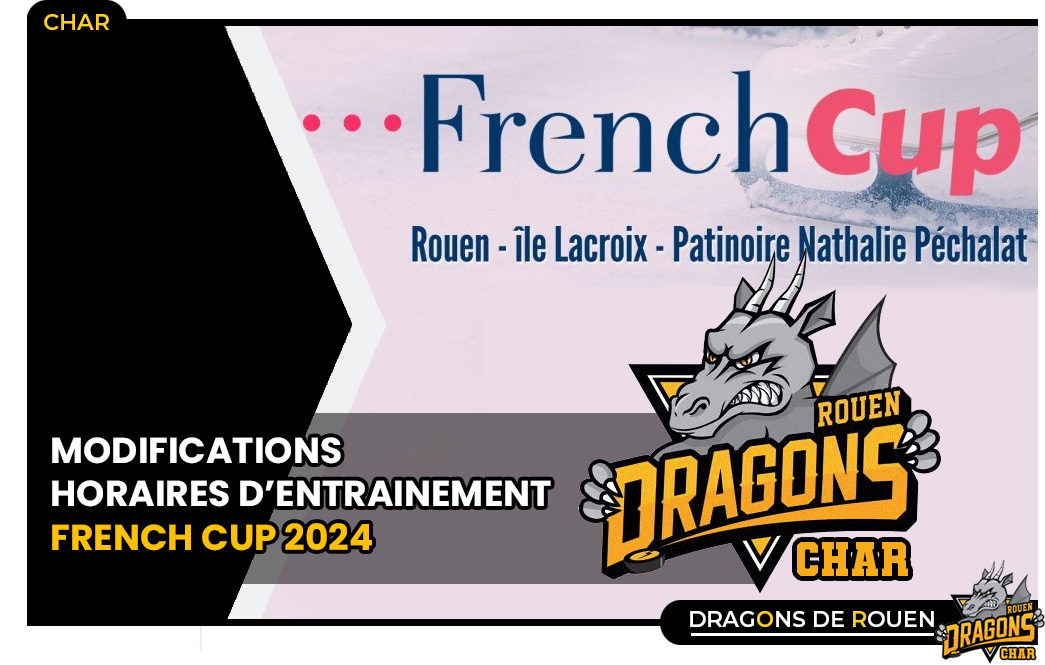 Comme chaque année à l'occasion de la French Cup, compétition de patinage synchronisé organisée par le Rouen Olympic Club le 02 & 03 février 2024, le planning des entrainements de hockey sur glace sont largement modifiés. Ci-dessous, les modifications pour cette semaine « particulière »