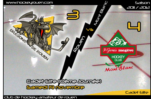 Après deux premières périodes où le Mont-Blanc s'était montré beaucoup plus vertueux en début de tiers, les Dragons semblaient lassés de ce scénario. En effet, sur l'engagement, à peine 17 secondes de jeu que Valentin Moreau pourfendait la défense alpine et profitait d'un gardien masqué pour porter la marque à 3-2 (40'17) Un fier avantage que malheureusement les rouennais ne parviendront pas à tenir bien longtemps. En effet, trois minutes plus tard, le meilleur compteur du championnat coté Mont-Blanc se chargeait de rappeler à l'ordre les normands en postant le palet au fond des filets pour le 3-3 (43'24) Incapables de se départager depuis le début de la rencontre, les deux équipes ne déméritaient pas sur les bords de Seine. Que ce soit Mont-Blanc ou Rouen, les deux formations auront l'occasion de tuer le suspense durant les dernières minutes de l'ultime période notamment sur la deuxième séquence à cinq contre trois contre les Normands (49'29) ou sur ce deux contre un qui voyait Thomas Cardon jouer les ailiers volants pour un lancer solide dont le rebond ne profitait pas à Maxime Griet (51'00) Et que dire de cette contre-attaque rouennaise où Kévin Maso accroché parvenait néanmoins à s'extirper pour provoquer le lancer de Téo Laurent. Sur le rebond accordé, Aurélien Dorey, plein axe manquait le cadre (54'27) Le moins que l'on puisse dire c'est que les dernières minutes de la rencontre seront animées, d'un but à l'autre, les deux équipes se rendaient coup pour coup sur un rythme complètement débridé : alors que les rouennais, une nouvelle fois purgeaient un double désavantage numérique, Quentin Papillon, lui s'en sortait avec mention sur les tentatives alpines (54'43) Jaloux, Victor Goy en faisait de même face à Théo Lanvers illico presto (57'23) C'est d'ailleurs le portier du Mont-Blanc qui « volera » la fin de match multipliant les arrêts face aux attaquants rouennais. Méritante, l'équipe du Mont-Blanc ira chercher sa victoire à trois contre cinq par l'intermédiaire de Julien Laplace en contre attaque (58'31) Un coup de poignard dans le cœur du Dragon qui ne s'en remettra pas. Les joueurs du Mont-Blanc décrochaient la victoire sur l'Ile Lacroix au terme d'une partie enjouée pour laquelle il fallait un vainqueur... Il sera montagnard sans que cela soit immérité pour les jeunes joueurs de Patrick Alotto.