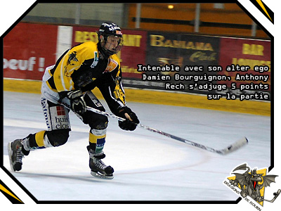 Des premières vingt minutes, les rouennais retiendront leur six but. En un tiers temps, le match semblait plié, bien plié d'ailleurs sous l'impulsion de Damien Bourguignon qui profitait d'un palet jeté au fond par Anthony Rech puis parfaitement relayé par Johan Saint-André, pour porter la mise à 3-0. 3 buts d'avance puis 4 sous l'égide de Vincent Guezou qui jouait la souris en se faufilant devant le gardien pour recevoir la passe de Florian Duval (12'57)