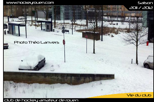La Haute-Normandie s'est reveillée ce dimanche 05 février sous la neige. Entre 10 et 15 centimètres de neige seront tombés dans la nuit sur Rouen, drapant la ville aux cent clochers d'une soyeuse cape blanche. Si à la montagne, on s'en amusera, dans les plaines, les difficultés de circulation occasionnées auront conduit à annuler plusieurs rencontres de hockey sur glace notamment pour les Dragons rouennais.