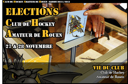 Mardi 27 et mercredi 28 novembre, le Club de Hockey Amateur de Rouen procèdera au renouvellement des membres de son Conseil d'Administration en organisant ses élections annuelles.