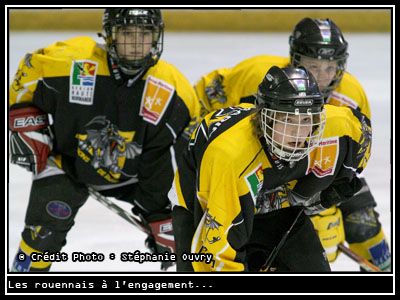 C'est en Basse-Normandie à Caen que les Dragons de Rouen Minimes auront l'opportunité de disputer leur quart de finale du championnat de France avec comme objectif clair et limpide de composter l'un des deux billets pour la demi-finale disputée à la patinoire de l'Ile Lacroix. Face à Angers, Anglet et Caen, les Hauts Normands ne manqueront pas leur rendez-vous en décrochant trois succès importants pour la bonne humeur. Si pour un Dragon, le quart de finale n'est qu'une étape nécessaire avant de satisfaire à des ambitions plus grandes, il n'en reste pas moins que ce passage obligé peut s'avérer piégeux d'autant plus lorsque l'on débute le tournoi face à l'équipe recevante. Face aux Drakkars de Caen, les jeunes Dragons pour la première journée ne se feront pas surprendre et assureront l'essentiel en s'imposant 7-2 face à des bas normands, certes volontaires mais affichant quelques limites fâcheuses dans l'optique d'une qualification. Etrillés par Angers 10-4 lors de la première journée, les Basques d'Anglet se dressaient sur le chemin des rouennais pour la journée médiane du tournoi à 4. La encore pour les Hauts Normands, à l'instar de la partie jouée la veille face à Caen, le suspense ne sera que peu présent. En disposant aisément des joueurs du sud-ouest 10-2, les Rouennais en tête du classement voyait se profiler un ultime duel face à Angers, titulaire de deux victoires également, pour le gain de la première place. Tandis qu'Anglet aux prix d'une victoire sur Caen 8-2 décrochera la troisième place du tournoi, les Rouennais souffriront face aux Ducs. Si au final la victoire sourira aux Dragons et sera au rendez-vous, le 6-5 annoncé au tableau d'affichage laissait les Rouennais sur leur faim avec quelques doutes bien présents dans leur tête avant d'attaquer la suite des aventures (résumé)
