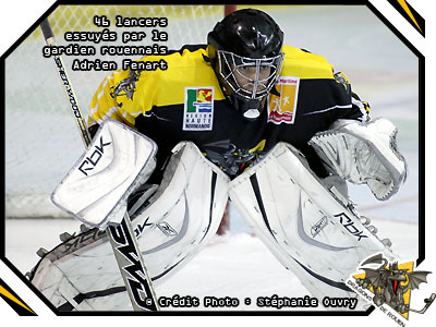 Pour le quatrième et dernier derby de la saison régulière du championnat Espoir Elite, les Dragons rouennais s'inclineront lors de la séance de pénaltys au terme d'une rencontre se soldant sur un score de 5-5. Après trois victoires dont une en prolongation face à Amiens, les Normands enregistrent leur troisième défaite de la saison en dépit d'une partie où ils auront longtemps menés au score. Pourtant, les affaires jaunes et noires semblaient bien mal engagées en début de rencontre. Pendant les dix premières minutes, le portier rouennais Adrien Fenart volait littéralement le score en effectuant une succession d'arrêts intéressants. Abandonnés par sa défense, le gardien jaune et noir s'illustrait sur un premier lancer dangereux face à lui de Maxime Belov (02'50) avant de voir son poteau repoussé la tentative de la bleue de Christophe Bourges (03'57) Dominés les Dragons subissaient les offensives picardes à l'image de celle d'Alexandre Delplanque complètement seul face à Adrien Fenart (04'49) Sur le banc rouennais, conscients du danger, on tentait de faire réagir un Dragon assoupi. « Un peu de chien « réclamait Germain Raimbourg. Invocation entendue par Clément Hondier qui lançait en contre-attaque Kévin Beziau pour un premier but tout en finesse (0-1 à 04'59)