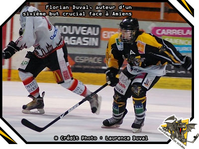 Certes, d'entrée de jeu, les Picards breakaient le tableau d'affichage par Maurin Bouvet (43'12) et pensaient sans doute avoir fait le plus gros du chemin face aux Normands. Douces et vaines illusions pour les jeunes Gothiques qui verront le vent de la révolte rouennaise soufflé au dessus de leur casque. A entendre l'énergie déployée lors d'un cri de guerre symbole de rébellion, Quentin Kello tapi sous son masque pouvait frémir d'effroi en imaginant une fin de partie orageuse. De fait, quelques minutes après le cinquième but rouge et noir, Anthony Goncalves sortait sa crosse de tueur de gardien pour dynamiter le but picard pour un retour en grâce des Dragons (44'33) Relancée, la « Team Jon Jon « profitera d'un cinq contre trois (46'29) pour égaliser par l'intermédiaire de Damien Bourguignon (5-5 à 47'52) Pour que l'histoire soit belle, que la rencontre soit accomplie, il ne manquait plus qu'un but aux Dragons pour clore ce chapitre face à Amiens. Trois minutes après l'égalisation à 5-5, c'est Florian Duval qui se chargeait d'apporter le « game winning goal » à ses coéquipiers. Lancé par le défenseur Xavier Boissel Dombreval et relayé par Mathieu Briand, l'attaquant rouennais pouvait esquisser un sourire en rentrant sur le banc pour recevoir les félicitations des siens (50'46), il venait tout simplement d'entériner la victoire des Normands 6 buts à 5 face au meilleur ennemi des Dragons. Une jolie victoire pour les Dragons, importante au classement, importante pour la suite du championnat avant de se déplacer à Angers pour finir par la réception de Reims pour la dernière journée.