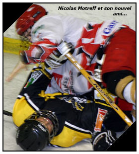 C’est donc sur de son fait que le Gothique, entendant bien se faire respecter sur son glaçon, se présentait pour tenter de faire mordre la glace au Dragon « Allez ! On leur fout des grosses cartouches ! » Fanfaronnaient-ils au moment du cri de guerre. Malheureusement pour Amiens, pour frapper les rouennais encore fallait-il pouvoir l’attraper ce dragon. Agiles, les Normands prenaient le palet du bon coté d’entrée de jeu à l’instar de son capitaine Julien Correia qui rétorquait à son compère de ligne Erwan Agostini pour les deux premiers lancers sérieux de la partie (01’20) Dans la foulée, c’est l’un des promus minimes rouennais qui s’illustrait sur un solide déboulé mal récompensé. En effet, Nicolas Motreff, pourtant échappé, trébuchait lourdement au moment de faire le dernier geste (06’03) Tentant de répondre du tac au tac à des Dragons distribuant de solides mises en échec, les Gothiques prenaient le pas de distribuer également parfois proprement, parfois illicitement à l’image du « bourre-pif » envoyé par Cazier à Hottegindre face à l’arbitre (13’14) Sensiblement, l’énervement gagnait les deux formations qui en oubliaient presque de jouer même si les Picards donnaient de l’ouvrage au portier rouennais Ronan Quemener imperturbable ou même si les Dragons tentaient d’ouvrir la boite à but en contres (Erwan Agostini, 13’17 & 15’15) Finalement, il faudra attendre les quatre dernières minutes de la partie pour voir le tableau d’affichage s’éveiller. Sur une magnifique passe dans la neutre de Lionel Tarantino, Julien Correia s’envolait en tête à tête face à Alexis Basso. A son tour, le numéro 14 rouennais se prenait les patins dans la glace et chutait lourdement sans oublier toutefois de lancer à la cage. Surpris, Basso ne parvenait pas à détourner la rondelle rouennaise et les Dragons pouvaient se congratuler après l’ouverture du score (0-1 à 16’25) Même si les Gothiques tentaient de se redonner le moral sur un débordement de Brohard plus habile à donner des coups que face à la cage pour tenter de marquer (17’49), ce sont bien les Dragons qui semblaient avoir pris la mesure de leurs adversaires. Sur un gros jeu à trois de la ligne Tarantino – Correia – Agostini, installée pendant de longues secondes dans la défensive rouge et noire, Lionel Tarantino finissait par trouver Erwan Agostini qui flinguait de prêt le portier gothique (0-2 à 19’34)