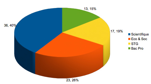 Filière Générale : Bac Littéraire (L), Bac Economique et Social (ES), Bac Scientifique (S)