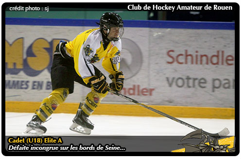 Atomisée 7-2 à domicile par Briançon pour leur première match, nul doute qu'Angers, en se rendant sur les bords de Seine, aurait eu du mal à imaginer prendre les trois points de la victoire. Et pourtant à l'issue des soixante minutes que durera ce match, ce sont bien les ligériens qui lèveront les bras et célèbreront leur succès sur l'Ile Lacroix, le deuxième en 23 confrontations en Cadet Elite A. A l'instar de l'année dernière où Angers avait mis un terme, à domicile, à la série de douze victoires accumulées par les Dragons, là c'est une deuxième défaite d'affilée que les joueurs de Grégory Girardot infligeront aux rouennais. Pourtant lors d'un premier vingt minutes pour le moins « soporifique » les Dragons étaient en mesure de prendre l'avantage dans la rencontre par l'intermédiaire de Tanguy Auger à la réception d'une passe de Hugo Quignard (1-0 à 12'31) Sans parvenir à faire le différence dans ce premier tiers, les rouennais en panne d'accélération, se contentait du strict minimum face à une équipe d'Angers timorée.