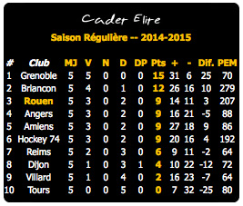 Avant cette rencontre face aux Hauts Alpins, dans chacune des têtes rouennaises, la perspective d'affronter sur sa glace Briançon puis Amiens en Picardie était l'occasion soit de rebondir vers le sommet du classement soit d'être irrémédiable décrocher du wagon de tête. 5Ème avant la rencontre, profitant du double revers d'Angers à domicile face à Reims (1-6) et d'Amiens face à Grenoble (4-8), les rouennais grappillent des points pour se hisser sur le troisième marche provisoire du podium. Une troisième marche plutôt embouteillée avec quatre équipes à neuf points : Rouen, Amiens, Angers et Hockey 74 derrière un duo de tête avec Grenoble lancée pleine vitesse avec 15 points et Briançon avec ses 12 points qui aura connu un tressaillement d'humeur sur le glaçon de l'Ile Lacroix.