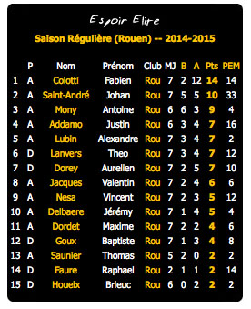 | Résultats & Classement | Compteurs Rouennais | Compteurs Espoirs Elite |