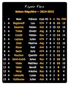 Espoir Elite (7ème journée – Dimanche 12 octobre 2014)
